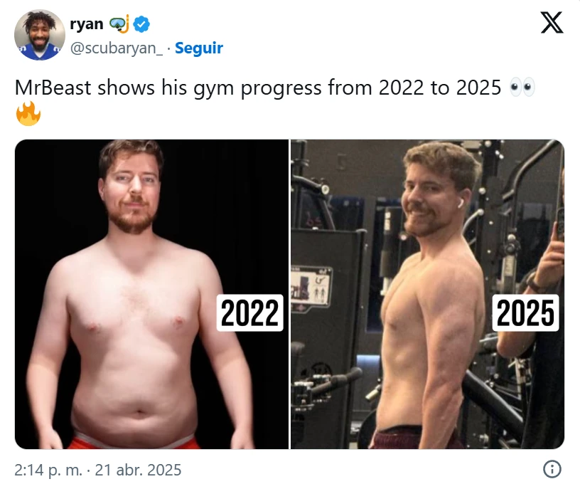 Durante las últimas horas, MrBeast sorprendió a sus millones de fanáticos con un posteo que compartió en sus redes sociales. El famoso influencer mostró el gran cambio físico que obtuvo a lo largo de los últimos tres años en los que entrenó sin parar.
