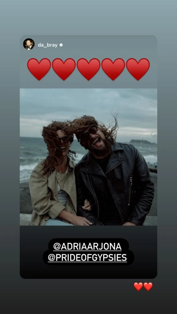 Jason Momoa decidió gritarle al mundo que está de novio con Adria Arjona, la actriz con quien está viviendo una vibrante experiencia en Japón. Enamorado, Momoa publicó fotos con la hija de Ricardo Arjona en pleno viaje, donde aprovechó para presentarse con su banda Pride of Gypsies.