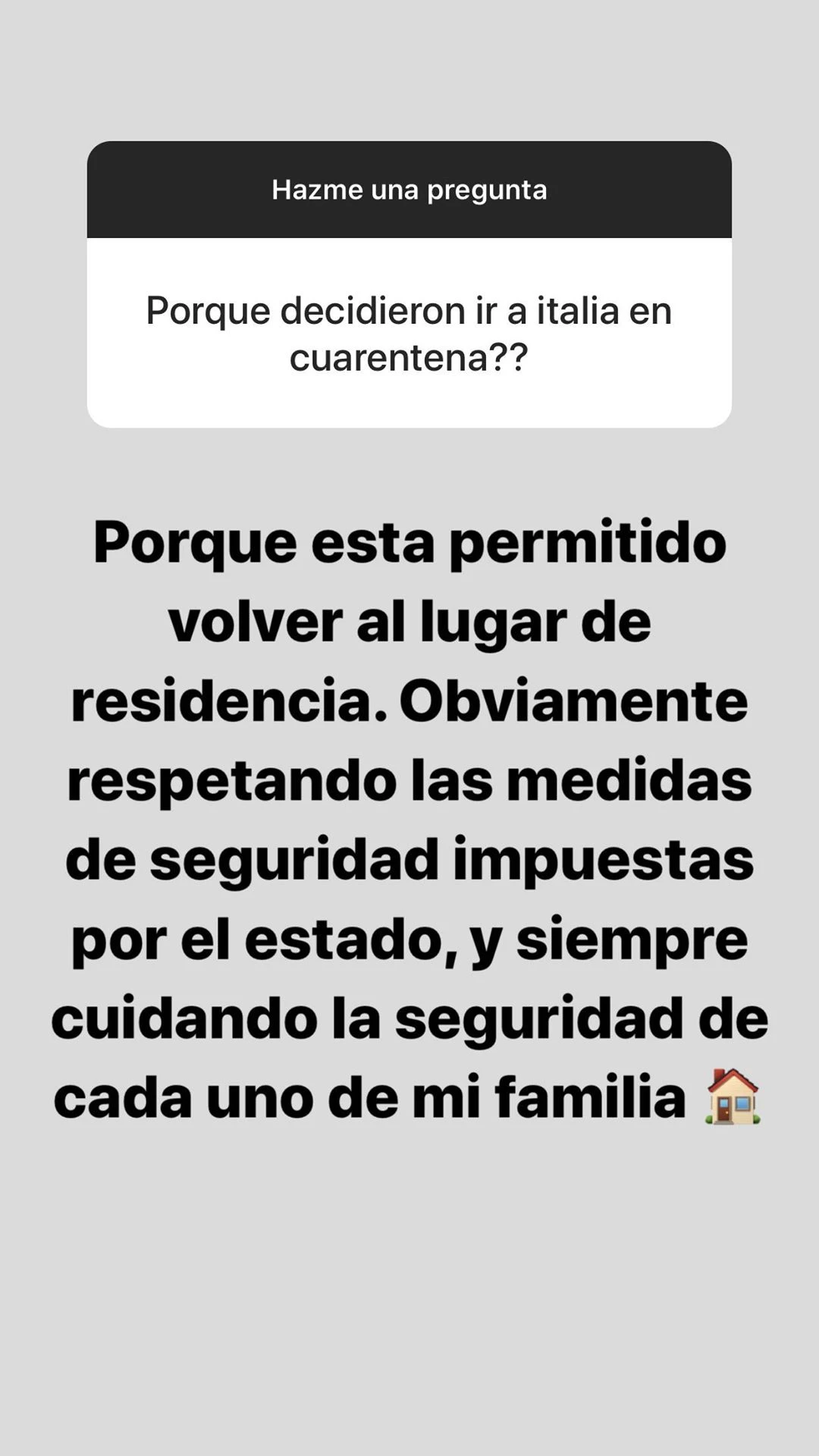 “Me gustaría saber bajo qué criterio rompés una cuarentena de una pandemia mundial, donde a todo el mundo se le pide no salir, y exponés a nuestros hijos a un viaje de un país a otro, te movés y te vas al epicentro del contagio (Lombardía) en Italia, sin importante ningún tipo de consecuencia”, escribió Maxi, sin embargo, Wanda no se refirió al respecto.