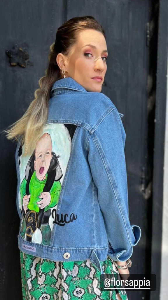 Viciconte lució la prenda de jeans sobre la que fue dibujado su pequeño hijito y que, también, lleva su nombre. Lo hizo con una postal de espaldas y aprovechó para arrobar a la artista que lo creó.