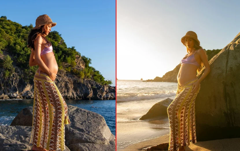 Las postales más tiernas de Agustina Casanova y su marido en la playa presumiendo su embarazo