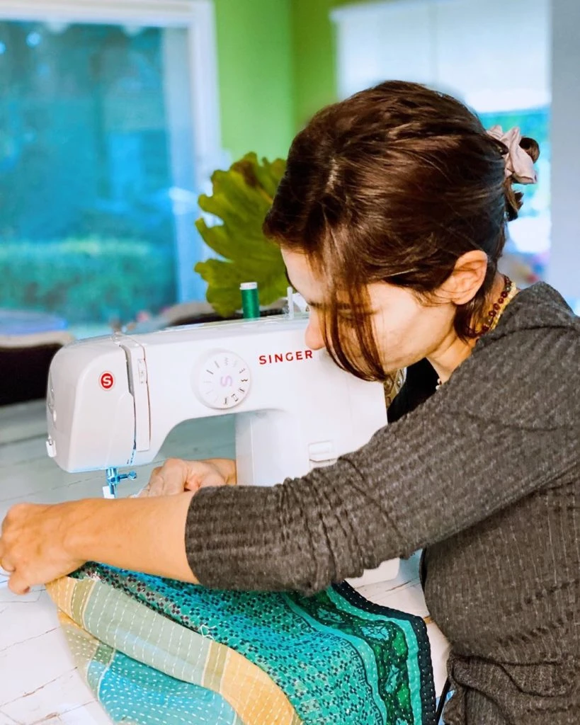 Ante la incertidumbre que le genera por estos días su profesión de base, la actriz también “calma” sus posibles ansiedades cosiendo, por el momento objetos y prendas propias.