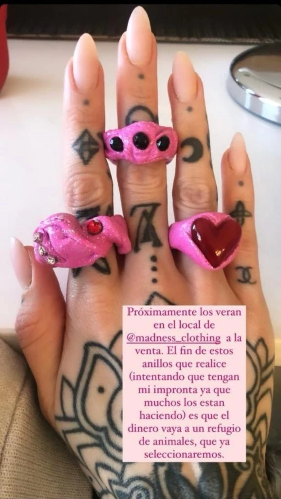 Se trata de una línea de anillos muy coloridos y de materiales poco corrientes que Cande quiere lanzar próximamente, con un fin noble: donar lo recaudado de su venta a una fundación proteccionista de animales, su gran pasión.
