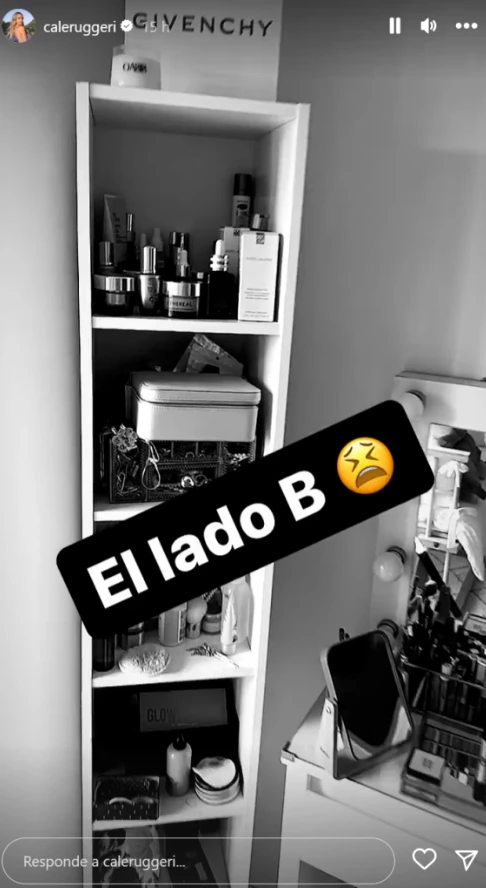 "Este es el lado B de donde me maquillo, está todo hecho un quilombo, no me dura nada el orden, quiero llorar…", contó la hija de Oscar Ruggeri al publicar unas fotos en blanco y negro de la habitación destinada a producirse antes de salir.