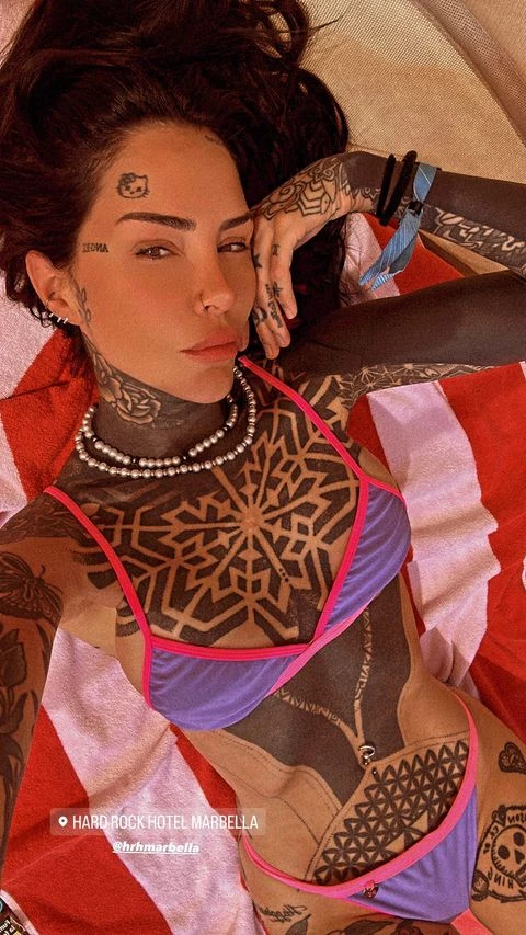 Con una selfie mostrando como disfrutaba de un momento tomando sol, se vio como posó con la bikini en lila y rosa que destacaba su cuerpo tatuado. Además le sumó un collar de perlas, el accesorio it este verano, para subirle la onda al look.