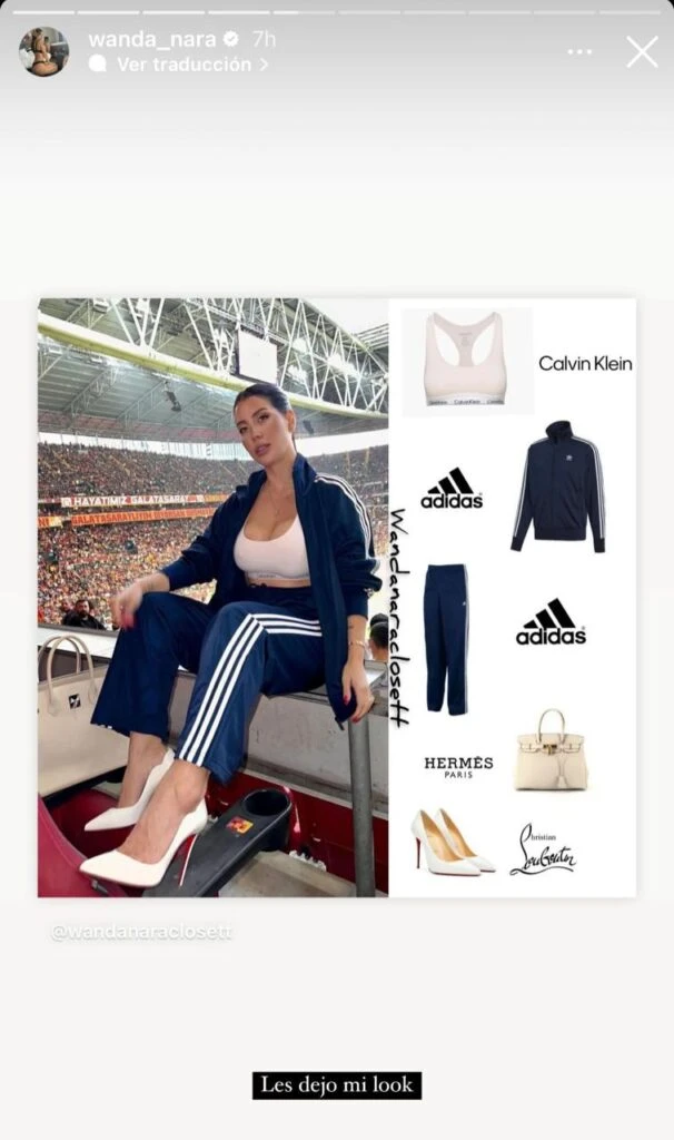 Sin escatimar en gastos, la mediática parece haber copiado todo lo que recomendaron en una revista de moda y puesto encima. Desde los pantalones, la campera, el top… y hasta la cartera y zapatos importados. Es que para sellar su estilismo Wanda llevó al estadio una cartera de mano de Hermes.