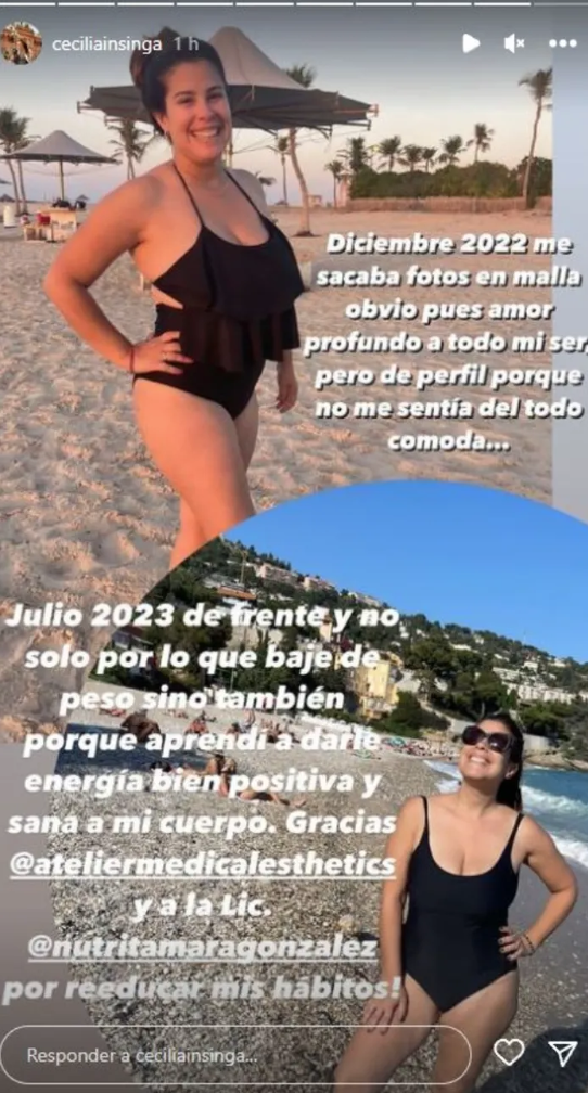 Cecilia Insinga compartió en sus redes sociales una imagen suya en la playa del año pasado, contrastándola con una fotografía actual en la que también se encuentra frente al mar, evidenciando un notorio cambio.