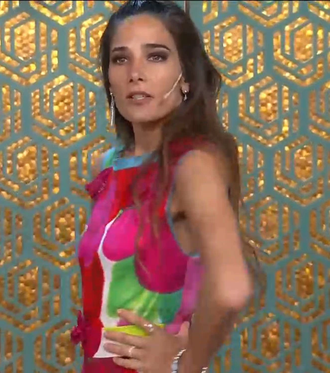 “Tengo un vestido que no es vestido. Es una falda con una remera, es de raso y yersey de algodón. Por supuesto… ¡del señor Bogani! También tiene aplicaciones de flores de rafia, que no sé si las pueden observar. Esto es para que venga un picaflor y me pique. Pura primavera. Todo del señor Bogani: con los bolsillos un poquito más abajo, que a mi me encantan, bien cancheros”, comentó la morocha Juana Viale.