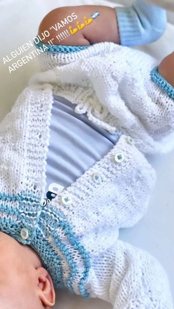 El pequeño lució un conjunto de dos piezas en blanco y celeste. Además, lo combinó medias y camisetita a tono. Con esto Cruz quedó listo para alentar a la selección el próximo domingo, cuando esté a tan solo días de cumplir su primer mes de vida.