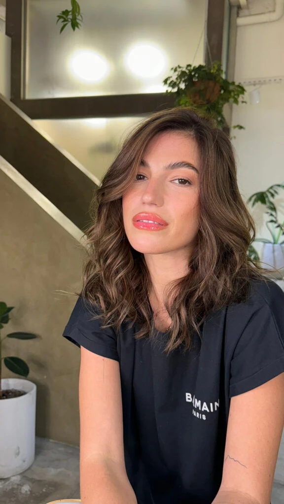 "Dejando atrás su versión bob castaño para transformar a una melena más larga e iluminada en tonalidades marrones tabaco. Se trabajaron puntos de luz específicos para enmarcar y resaltar el rostro. Generamos mayor contraste el cual aporta más volumen a la melena y naturalidad", contó Max Jara.