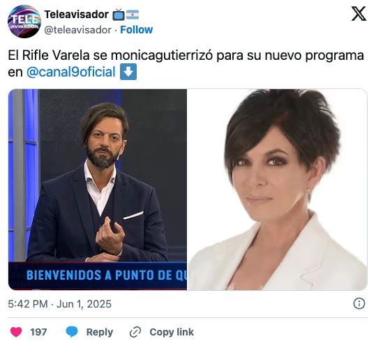 El periodista apareció con un peinado prolijo, corto, con flequillo lateral… y las comparaciones no tardaron en llegar. “Es Mónica Gutiérrez”, escribió un usuario en X, y ese comentario fue el disparador de una ola de memes, capturas y chistes que rápidamente se viralizaron.