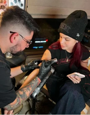 Emilia subió la publicación a su Instagram donde se le ve prestando parte de su cuerpo al tatuador para que haga su trabajo y, luego, una imagen con el resultado final de la "obra artística".
