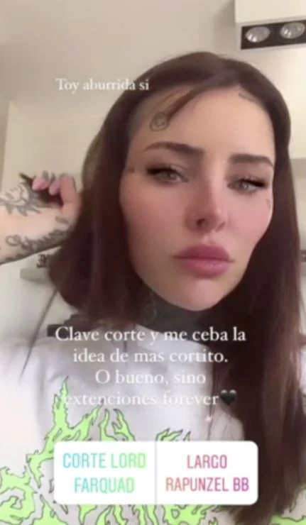 “Estoy aburrida, sí. Clavé corte y me ceba la idea de más cortito. O bueno, de lo contrario extensiones forever”, expresó Lelé en sus historias de Instagram, donde dejó a los usuarios una encuesta para saber si prefieren que tenga el cabello corto, cual Lord Farquaard, el personaje de la película animada Shrek. O bien largo, como Rapunzel.