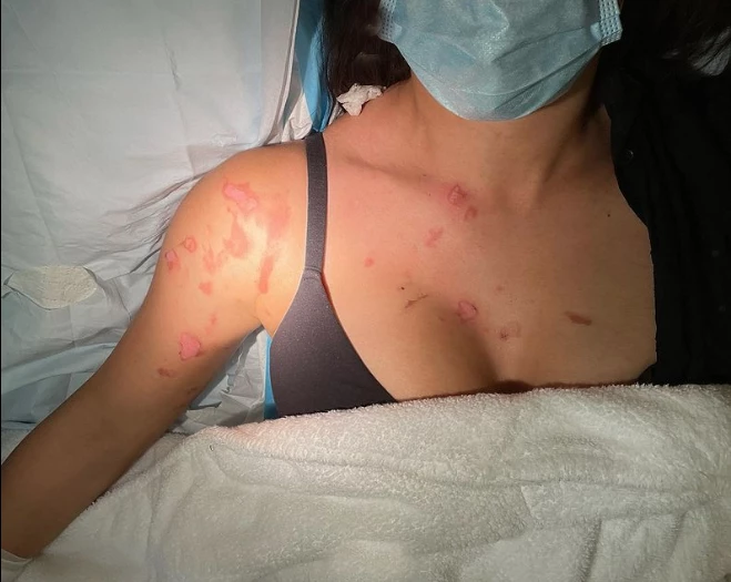 El accidente sucedió en el interior de su casa. “Estaba cocinando una sopa de calabaza con una máquina y explotó al lado mío. La sopa explotó con la presión. Esto fue un viernes, yo vivo en Los Ángeles y el lunes tenía que estar grabando en México. Llamé a la producción y les mostré todo", recordó la actriz, que optó por seguir adelante a pesar de las heridas.