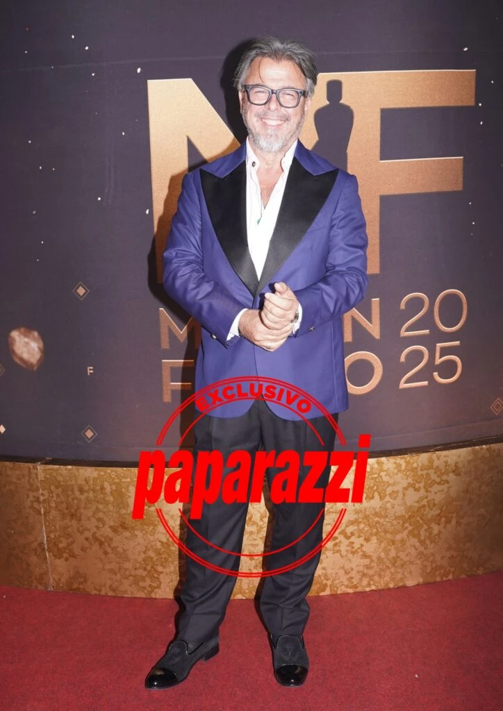 Kennys Palacios rompió la alfombra con un saco gris intervenido en pintura fluorescente y botas chunky: sello propio. Lizy Tagliani optó por una silueta crema con capa etérea y falda de paillettes plata—luminosidad total y simpatía de siempre.