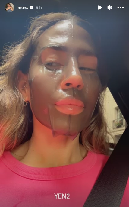 Sin tiempo, quizá, para hacerse una mascarilla puertas adentro de su casa, Jimena decidió aprovechar el tiempo mientras transitaba por la vía pública. Con el producto en color "chocolate" aplicado sobre su cara (sin tapar los ojos ni nariz) deambuló por las calles porteñas y lo compartió en su cuenta de Instagram.