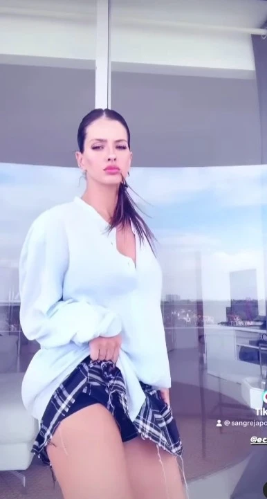 Vestida de colegiala, optó por ponerse una camisa blanca y una pollera a cuadrillé. En este outfit súper característico de los colegios más top, la China causó furor y todos sus seguidores comenzaron a subir el video a sus redes.