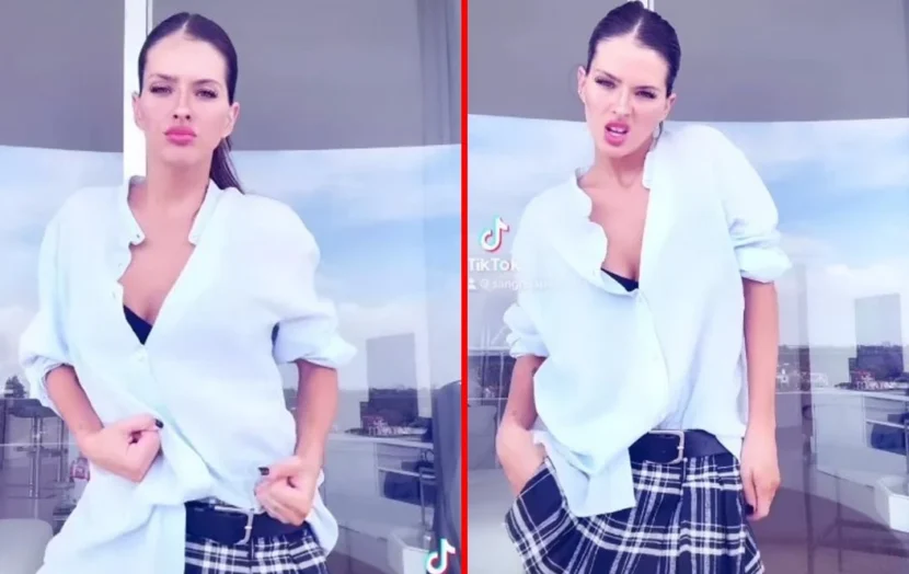 Vestida de colegiala, optó por ponerse una camisa blanca y una pollera a cuadrillé. En este outfit súper característico de los colegios más top, la China causó furor y todos sus seguidores comenzaron a subir el video a sus redes.