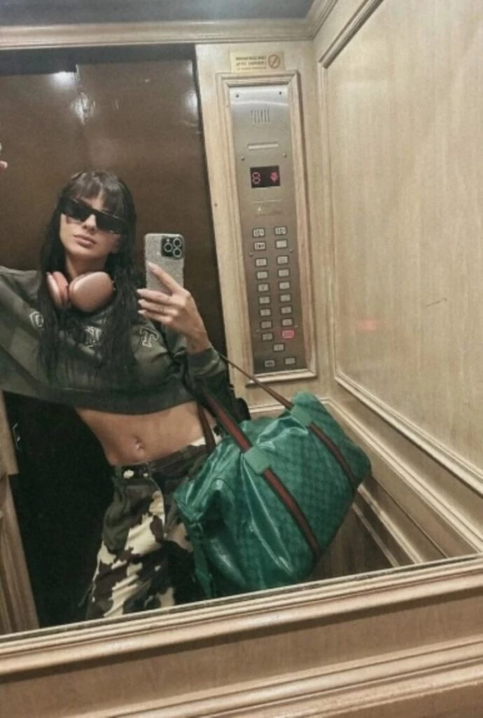 Por empezar, La China Suárez llevó puesto un pantalón oversize tiro bajo, que combinó con un buzo crop, auriculares XL y lentes de sol. No obstante, lo que más llamó la atención fue el bolso Gucci.