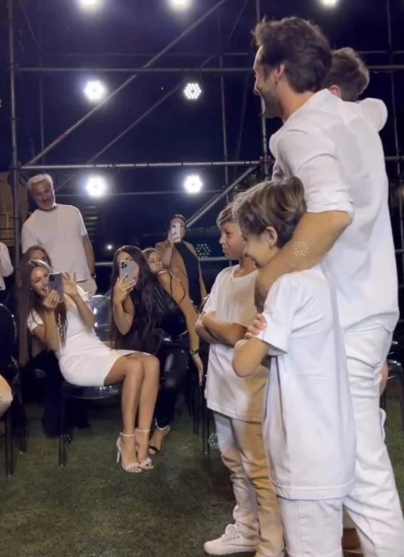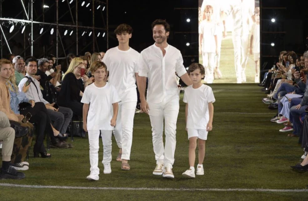 Contento de compartir ese momento con los hijos que tuvo con Carolina Ardohain, Benjamín se mostró muy sonriente en la pasarela por la que también desfilaron Dante Ortega, Tiziano Gravier y hasta Coti Sorokin, en una noche llena de glamour y elegancia.