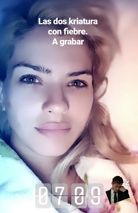 La actriz, de 27 años, publicó en su Instagram una foto tomada a las siete de la mañana. “7:09. Las dos criaturas con fiebre. A grabar”, escribió al pie de la imagen que no delata su noche en vela y que, por el contrario, la muestra hermosa como siempre.