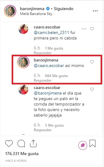 "No se te moja el celular, osea tipo abrís la ducha te mojas el pelo pones el temporizador y te la sacas ? Cómo carajo haces mujer", fue el comentario que le realizaron en su publicación.