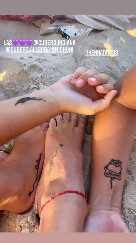 Amante de los símbolos, Nicole les propuso a sus herederas compartir uno y, de común acuerdo entre las cuatro, se tatuaron. Cada una eligió el diseño en henna que mas le gustó y lo plasmaron sobre su piel con un tinte de color rojizo. Con el correr de los días, se borrará porque no es definitivo.