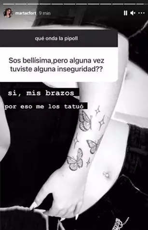 "Sos bellísima, ¿pero alguna vez tuviste alguna inseguridad?", quisieron saber. "Sí, mis brazos... Por eso me los tatúo", afirmó la hija del “Comandante”.