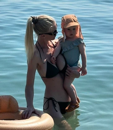 La modelo, que está disfrutando a pleno de esta etapa de su vida como madre, decidió ir a darse un chapuzón con la nena a un lago donde pasaron tiempo juntas. Daniela posó con la beba mientras estaban sentadas en un banco y lucieron sus trajes de baño. La pareja de Maxi usó una bikini color verde oscuro y su hija, en cambio, lució una malla enteriza a rallas y volados.
