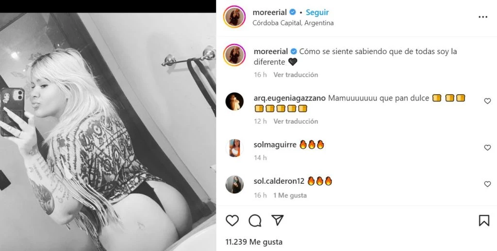 “Holi, ¿me dan amor?”, solicitó More, que suele cambiar su look y tatuarse nuevos diseños frecuentemente en diversas zonas de su anatomía. Ante esa publicación, alguien quiso saber más datos sobre su presente sentimental: “¿Estás soltera?”.