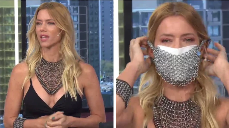 Nicole lo sacó de la duda en un puñado de segundos. "Esto es lo que se viene. Cadenas". Entonces, ensayó un bailecito sensual y consideró que se sentía "como una odalisca". Entonces, otra de las panelistas, Agustina Kampfer, le pidió que mostrara el barbijo. Nicole se lo puso, y tal cual: estaba lleno de cadenitas.