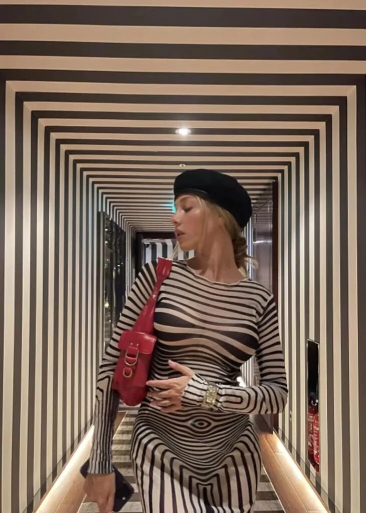 Pampita y Ester Expósito tienen en común algo más que su talento y belleza. Ambas lucieron el mismo vestido llamativo en las redes sociales, un vestido beige con rayas marrones, que definitivamente no pasó desapercibido en las redes sociales.