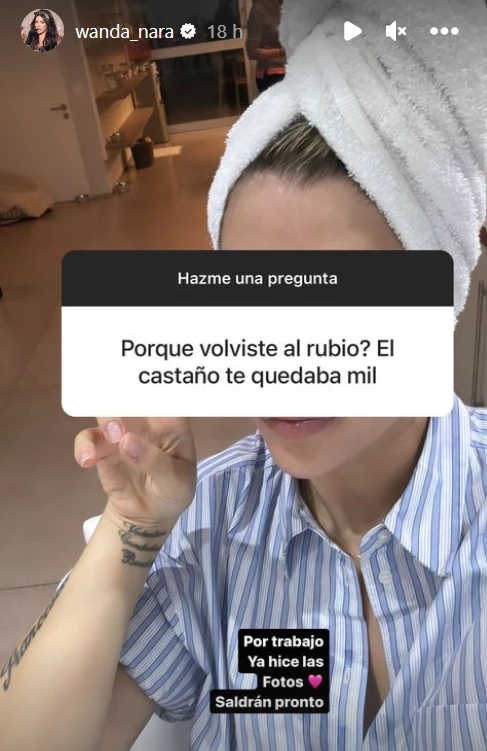 "¿Por qué volviste al rubio? El castaño te quedaba mil", quiso saber una persona y ella respondió, sin vueltas: "Por trabajo. Ya hice las fotos, saldrán pronto". De esta manera, Wanda dejó abierta la posibilidad de volver al castaño natural, el mismo color de su hermana Zaira.