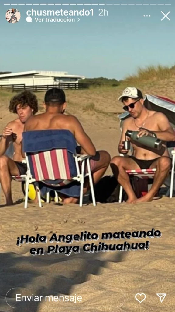 “¡Hola Angelito, mateando en Playa Chihuahua!”, posteó el perfil de Instagram Chusmeteando al divulgar las dos fotos en los que se lo ve al periodista con su pareja que se resiste a mostrar y que el año pasado deschavó sin su permiso Yanina Latorre durante una reunión en su casa.