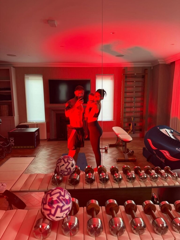 El carrete también incluyó escenas que reflejan la complicidad de la pareja. En una de las fotos, Ailén y Alexis aparecen entrenando juntos en el gimnasio de su casa, con Alaia en brazos y rodeados de elementos de ejercicio, mostrando cómo lograron integrar la vida familiar a sus rutinas personales y profesionales.