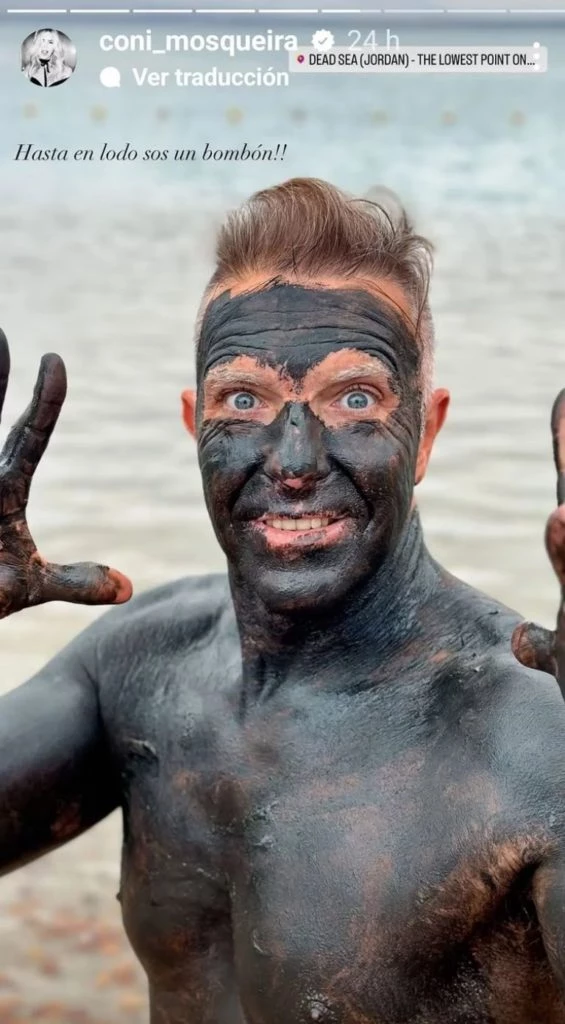 Coni compartió una serie de fotos de ella misma flotando en las aguas del lago y escribió: “Hoy flotamos sobre el Mar Muerto. El punto más bajo del mundo”. Luego, la modelo mostró el proceso del baño de lodo, que “tiene muchos minerales y sales”. Completamente cubiertos por el material, el matrimonio posó para la cámara con gestos graciosos.