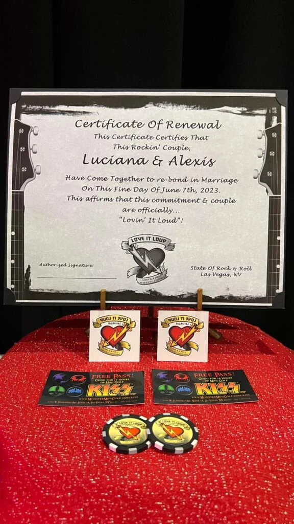 "Kiss es mi grupo favorito de toda la vida por eso elegimos ese lugar y no el tradicional casamiento con Elvis que es el más común. En el mismo viaje fuimos a ver a The Cure en Salt Lake City porque es el grupo preferido de Luciana. Así que fue un viaje muy rockero", contó Alexis en diálogo con Revista Paparazzi.