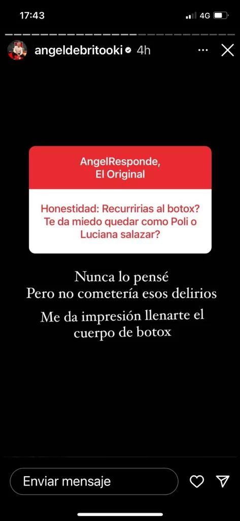 La tendencia de apelar a la intervención de cirugías estéticas se maximiza en el universo de la farándula. Los famosos, y las famosas, suelen acudir a esas técnicas para retocar su imagen y pelearle al avance del tiempo. En ese sentido, Ángel de Brito se diferenció de personalidades como Luciana Salazar y Marcelo Polino y contó sus motivos.