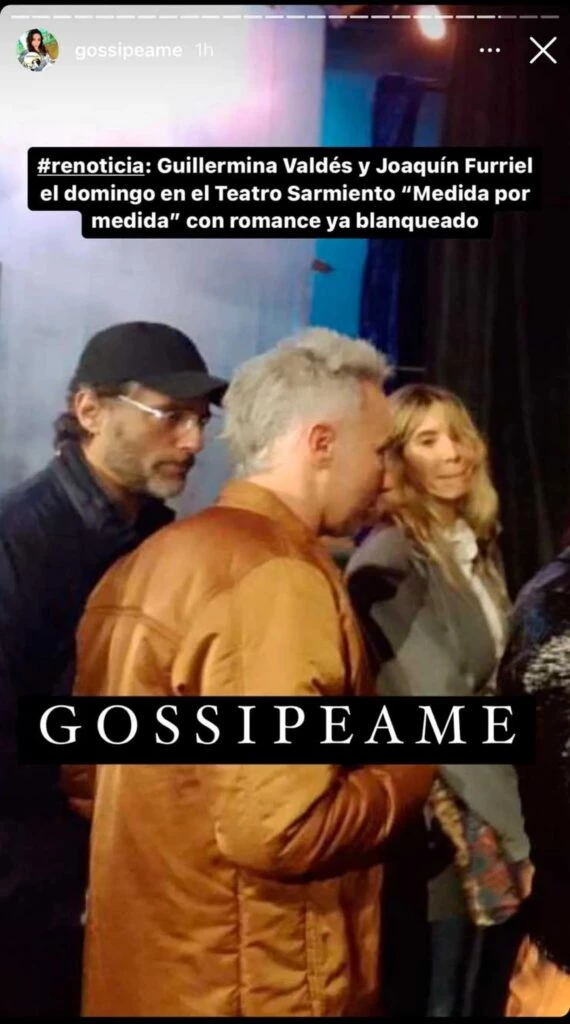 La cuenta de Instagram que filtró la imagen describió: “Guillermina Valdés y Joaquín Furriel el domingo en el Teatro Sarmiento 'Medida por medida' con romance ya blanqueado”. Con esto, sus fanáticos esperan verlos más seguido por la ciudad.