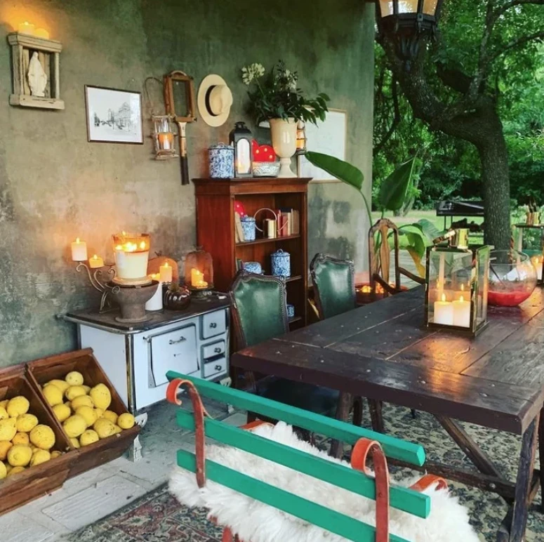 Bien al estilo Icardi, a quien siempre le gustó la onda campestre, los ponchos y los fueguitos, la estancia de Antolín y su marido fue construida sobre una antigua casa de 1930 y tiene establo, viñedos, amplios espacios verdes y una decoración muy cálida, con espacios abiertos para recibir a sus amigos.