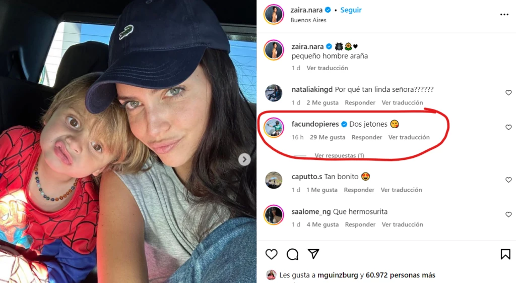 “Dos jetones”, expresó Pieres, acompañando sus palabras con un emoji de beso. Cabe destacar que este es el primer gesto público que el deportista hace en las redes de su pareja, con quien blanquearon su reconciliación en un partido de polo.