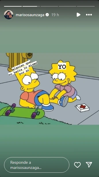 En este punto, aquel dardo dirigido hacia el Chino, se vio acompañado con una segunda historia en la cual subió una imagen de Los Simpson y diferenció “Yo” y “Alguien que no haría lo mismo por mí”, en referencia a Lisa cuidando de Bart. Otro dardo dirigido hacia el participante del reality que demuestra lo roto que está el vínculo entre ambos.