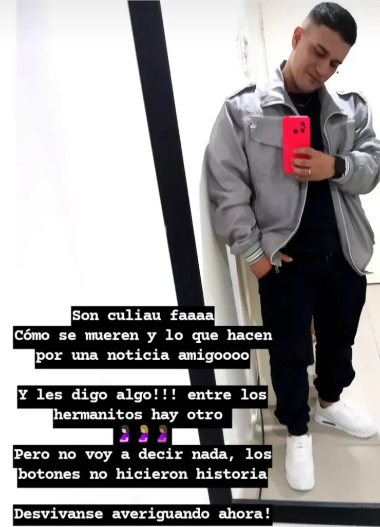 “Son culiau faaa. Cómo se mueren y lo que hacen por otra noticia amigoooo. ¡Y les digo algo! Entre los hermanitos hay otro (emojis de una chica embarazada)”, comenzó diciendo el popularmente conocido, Negro Onty.