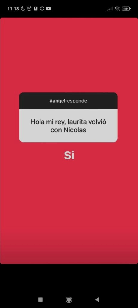 Pues bien, el que recibió una pregunta parecida, ahora, fue De Brito. En realidad, lo que quiso saber uno de sus tantos seguidores fue si Laurita Fernández y NicolásCabré habían vuelto. Entonces, al muchacho de Lomas de Zamora le alcanzó con una sola palabra para anunciar que se habían reconciliado: "Sí", respondió Angel. Dos letras que dijeron más que mil cosas.