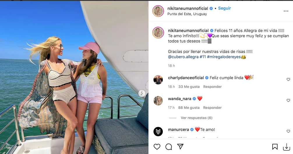 Incluso, Manu estuvo presente en el viaje acuático y hasta ayudó a hacerle frente al viento que soplaba a la hora de encender las velitas y cantar el feliz cumpleaños. Luego, para despejar dudas y resumir su presente tras el cimbronazo de posibles “cuernos”, Neumann compartió las imágenes del festejo, en un posteo que recibió miles de comentarios y likes en pocos minutos.