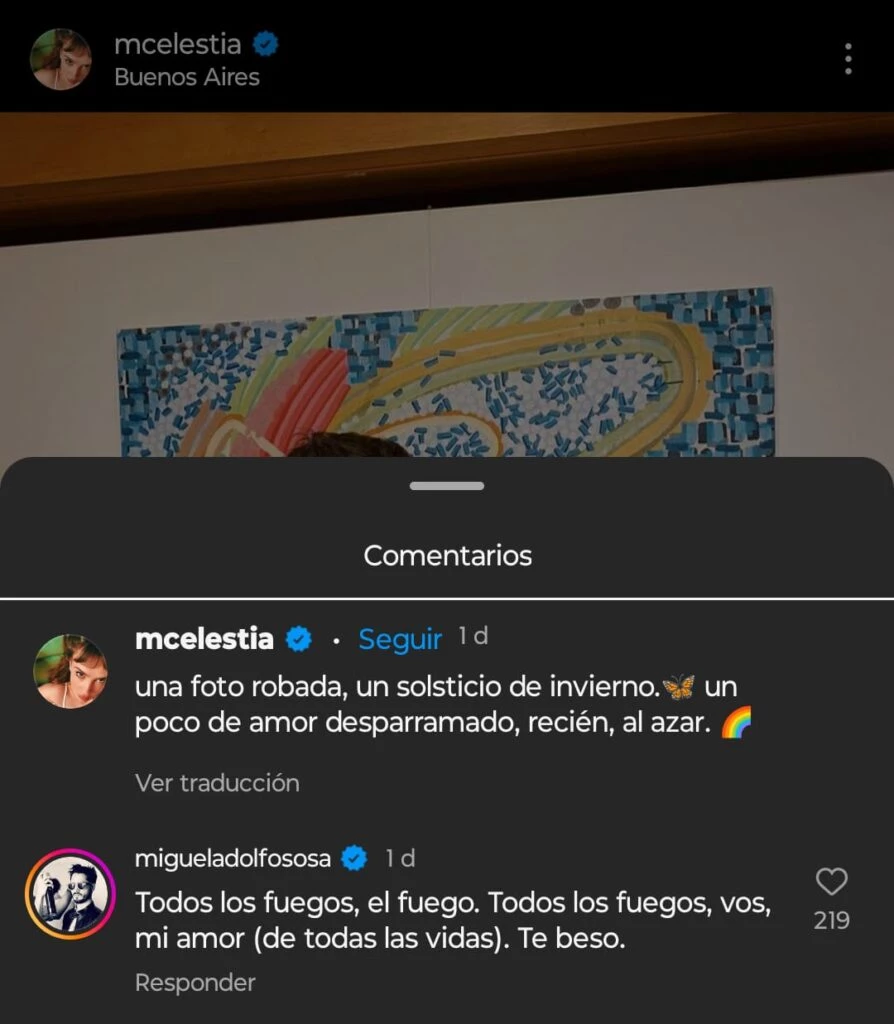 Por su parte, su pareja muy enamorado le respondió: "Todos los fuegos, el fuego. Todos los fuegos, vos mi amor (de todas las vidas). Te beso", la frase que pertenece al libro "Todos los fuegos" de Julio Cortázar. La publicación no dudó en llenarse de comentarios derretidos de amor y emojis de corazón.