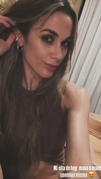 “Mi cita de hoy, mano a mano conmigo misma”, escribió Chechu en una historia de Instagram, con un emoji de ojos de corazón. En la imagen se la podía ver maquillada, con los ojos delineados, luciendo aros y un vestido marrón. Luego, la secuencia continuó con un breve video grabado en el living de su casa: recostada en el sillón, acomodándose el pelo y con una dulce sonrisa.