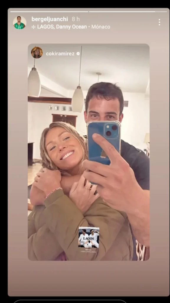 Cocki compartió una imagen con Juanchi, quien la tiene abrazada por la espalda y la posteó en su historial de Instagram.