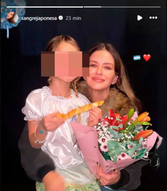 Llamativamente, los famosos postearon las pruebas de esa mañana en la que se cruzaron sus caminos. Todo se remite a un acto escolar de Magnolia, la mayor de sus herederas. De ese modo, la blonda mostró unas stories al lado de su pequeña disfrazada para el evento.