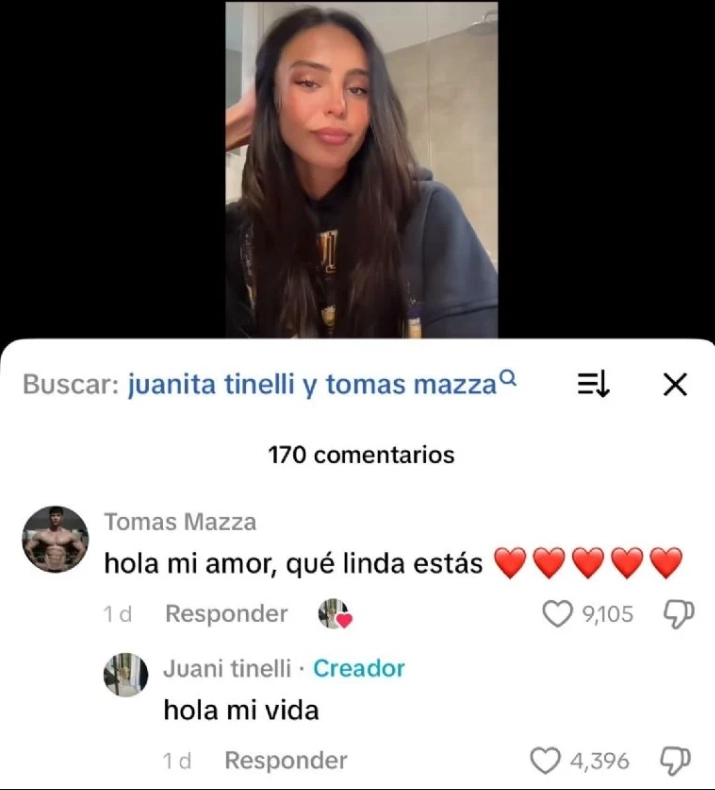 Ese gesto llegó donde todo se amplifica: en TikTok. En uno de los videos de Juanita, relajada y cantando un tema de María Becerra, Mazza dejó un comentario sin rodeos que encendió las alertas: “Hola mi amor, qué linda estás”, acompañado de corazones que no necesitaron traducción.
